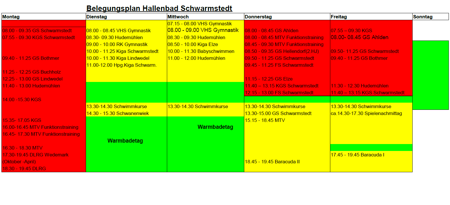 | 10.00 - 11.30 Babyschwimmen Elithera | 10.00 - 11.25 GS Schwarmstedt | ||||